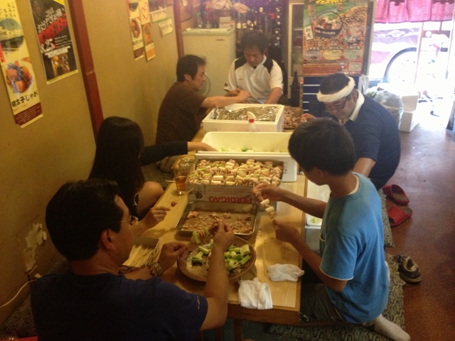 今年も花笠まつりに出店。やきとり、つくね、明太子じゃがの三種の神器で参戦!! 連日完売で、大盛況だったとのこと。仕込も大変だったそうです。糸車さんの仕込み専用フ○○ピン工場!?(笑)