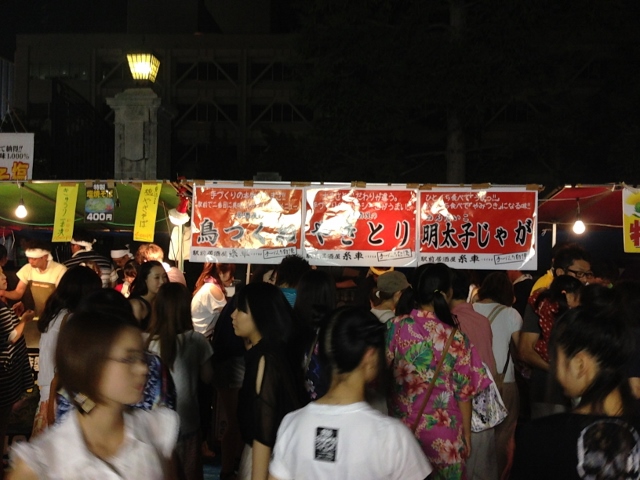 雨に見舞われた花笠まつりでしたが、夜はなんとかいけたようです。大盛況の糸車さんの出店。