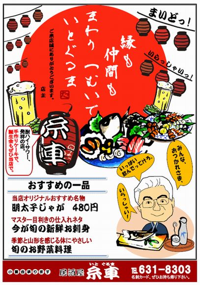 ★★★ 縁も 仲間も まわり つむいで いとぐるま ★★★ お気に入りの店「糸車(いとぐるま)」=山形駅前の十字屋パーキング入口正面にある暖簾のお店。