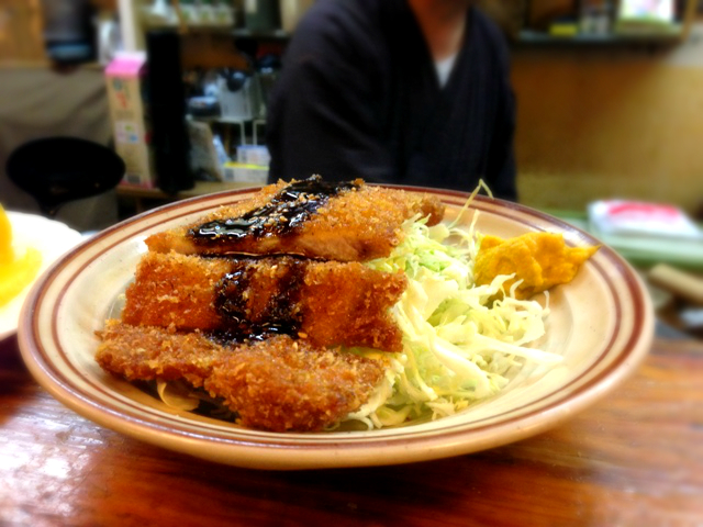 最近、よくマスター出してくれる「とんかつ」。ソースと、かつは、ビールに最高です。