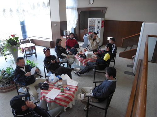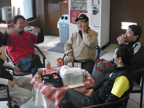 プレイ前のお茶の時間。と思いきや、やっぱり堂々と○ち込んで飲んでます。(車中でもマスターは飲んでました・・・)