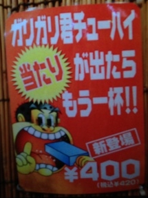 ガリガリ君が一本まるごと入ったチュウハイです。その場のノリで生まれた限定品なのかなと思ったんですが、マスターはノリ気でして。