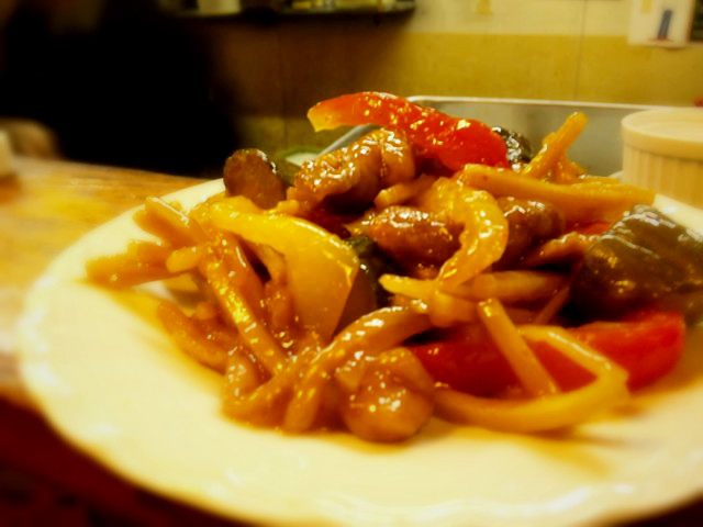 最初に出てきたのは、いきなりのがっちり中華。ピリ辛のひと品。うまかったぁです。白いご飯がほしいぞ、って感じ。