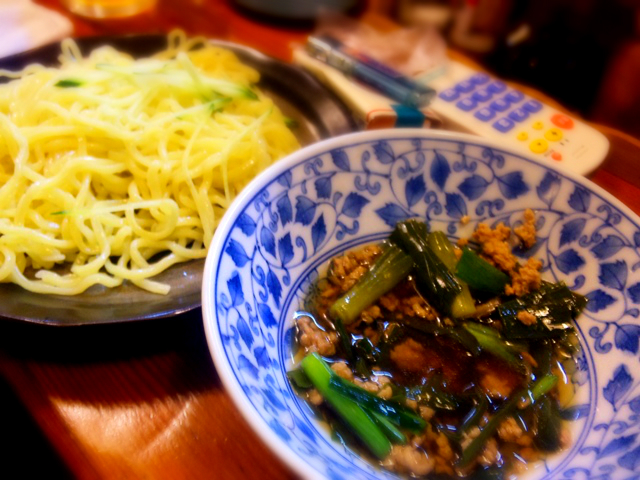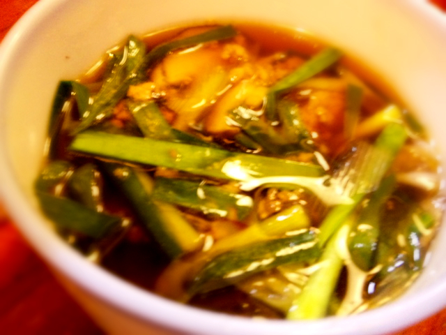つけ汁が、「ひき肉とニラの温つけ汁」