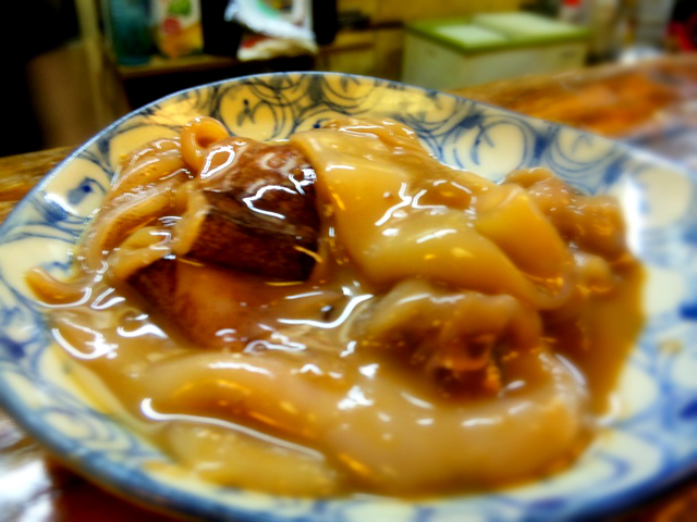 マスターお手製の「いかの塩辛」。きりこみってやつ。いろんな下味調味料いれるんだっけ、聞いたら。無類の塩辛好きの私には、この自家製ってやつは、ほんとにたまらないです。