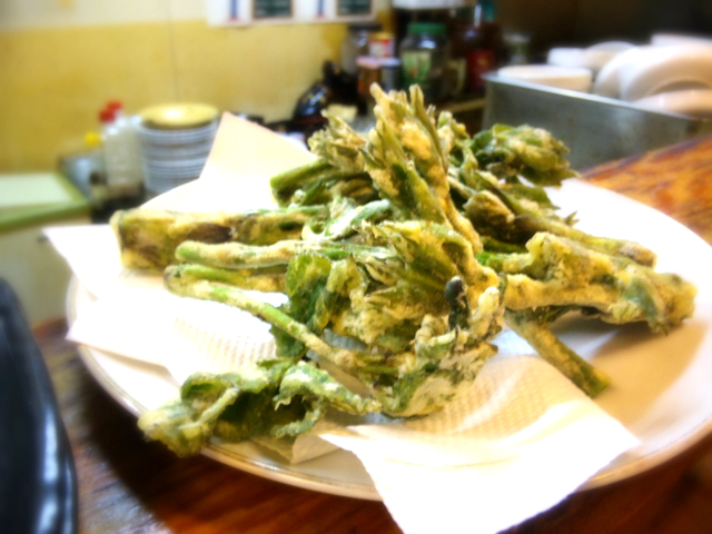 頂いた「若ウド」の葉のほうをマスターが天ぷらにしてくれたもの。これは最高に美味しかった。