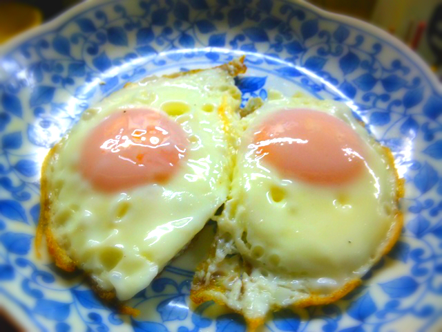 リクエストして作ってもらった「目玉焼き」。二個出てくるとは思わなかったけど、なんかかわいい。これに醤油が最高です。
