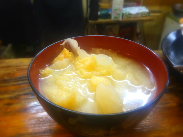 白菜とじゃがいものみそ汁。家庭の味つづき。