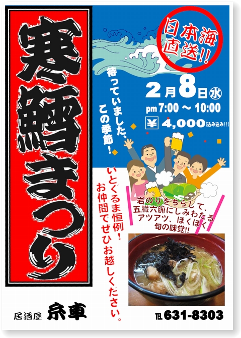 糸車さん恒例の「寒鱈まつり」(どんがら汁)が開催されます。