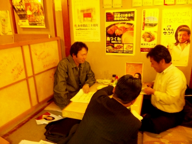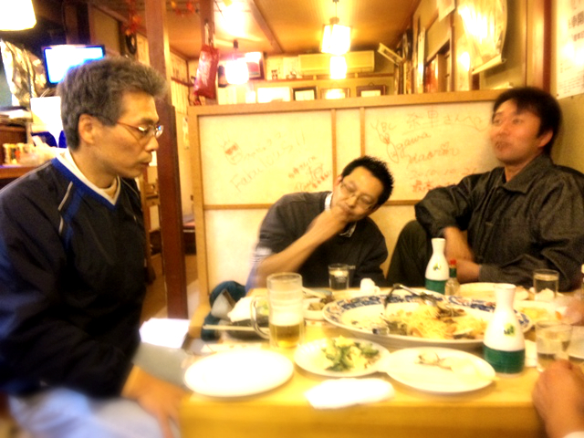 上の写真は、実行委員会の大幹部のご三方、Szk発起人様と鳥羽二郎実行委員長、Abe分団長氏が周年パーティの最終人数の確認をされていました。大変です、本当にお疲れ様です。