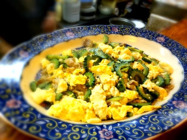 「ゴーヤチャンプル」です。シャッキシャキでホントに美味しかった。本場の味はわかりませんが、自分が頂いたゴーヤチャンプルのなかでは一番美味いと思いました。味つけがい~んだよねー。