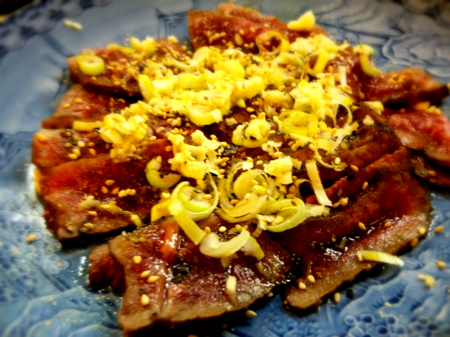 牛タタキ。毎回でも食べたいです。にんにくで、美味しかったぁ。