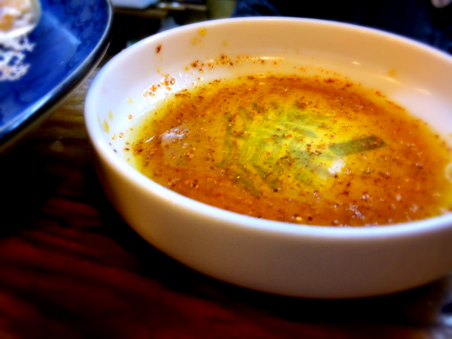 これはマスターのお手製のギョウザのたれ。このあたりが、マスターっ、んもぅー、タニンジったらぁー、っ的な、、。