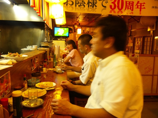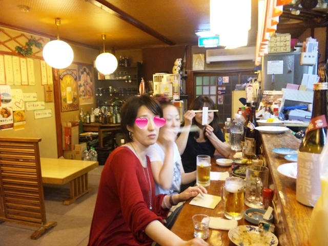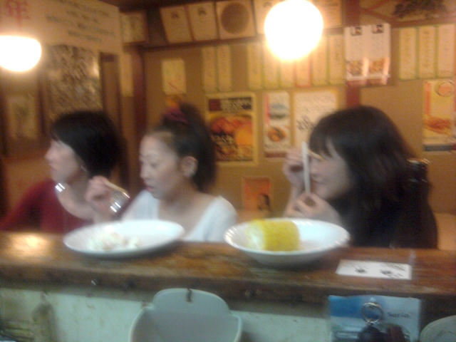 こっちはマスターが珍しく盗撮した写真です。ぼやけでっからそのままで(いーびゃー、) 芳屋ママが割り箸で目隠ししてますから。