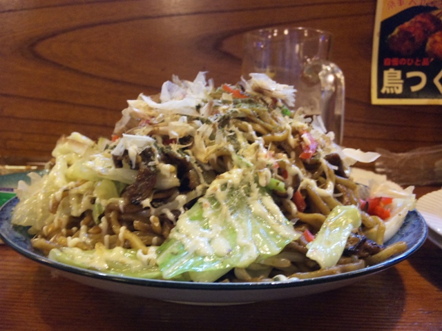 「大盛り焼きそば」で満腹取材、完了。(キャベツ旨そ)