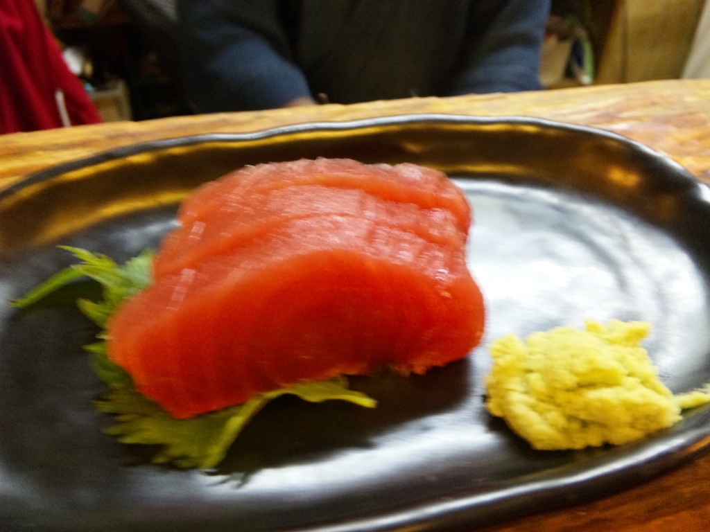 次はあっさりと「まぐろのお刺身」。やわらかくて、あったかいご飯がほしくなった気が。
