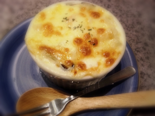 これは、その夜にマスターと「よしや」さんにお邪魔した時(久しぶりー)の「グラタン(お通し)」。あったかくて、マスターのも二人分頂いちゃいました。美味しかったとです。(しかし食うよねー)
