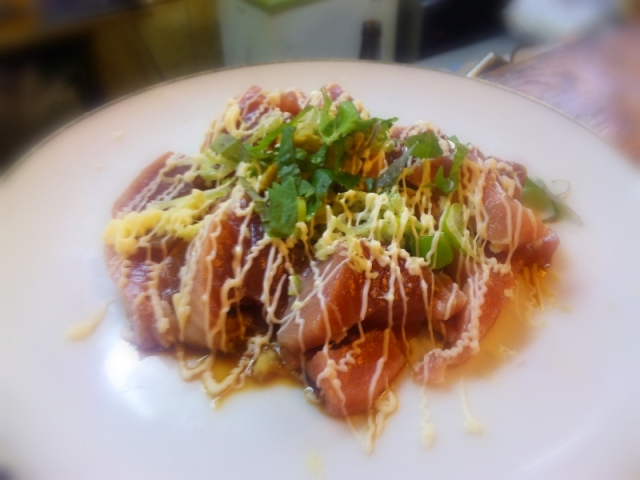 「かつおのカルパッチョ」たぶん(また)。サラダ感覚で、ごそって食べたような。(かなり話が盛り上がっていたというか、店内のボリュームも大きかったので、お肴たちの印象が少し・・)