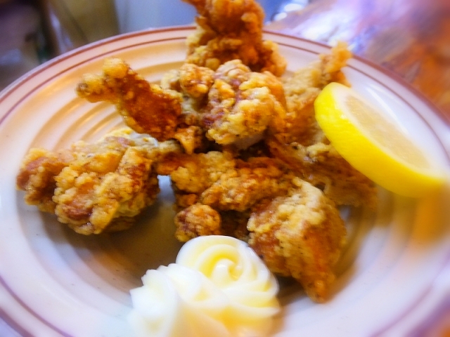 最初は、伝家の宝刀、マスターの特別な「から揚げ」。いつ食べてもほんとに美味いです。から揚げには目が無い自分ですが、マスターのから揚げはまた格別。書いててイヤになるぐらい食べたくなるひと品。