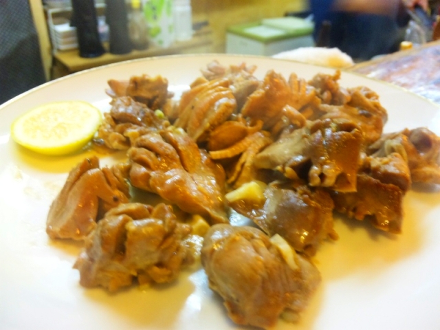 最近、ブームの「砂チャン焼き」。砂肝炒めです、牛タンみたいです。砂肝は予めの処理が大変らしく、おしながきには加えにくいというマスター談。ありがたい一品という訳。