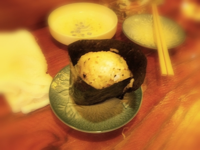 カウンターで飲んでて、結構うれしいのが「おにぎり」。コンビニのおにぎり以外に、まして手づくりのおにぎりを食べる機会がなくなった自分にとってはほんとに美味い食べ物です。昔は三角のおにぎりが嬉しかったけど、今は丸みをおびたカタチが好ましいなぁ。。(ん?、何か、いやらしい?、同感の人多いと思うけどなぁ)