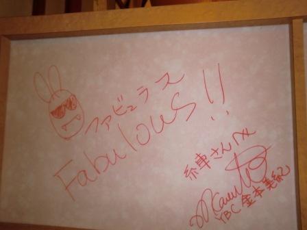 この日は、フリーアナウンサーの「大友まさみ」さんも一緒に飲みに来ていて、女子アナさん専用衝立に、サインしてもらいました。