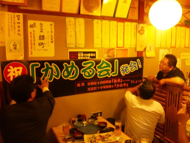 この日、新しい山形の美食組織活動、「かめる会」の発会式を糸車さんで開催。村山市にある「沢(さわ)」食堂に端を発したこの組織は、まぼろしの大盛やきそばを食する機会を見失ったまま、活動一回にして、解散。