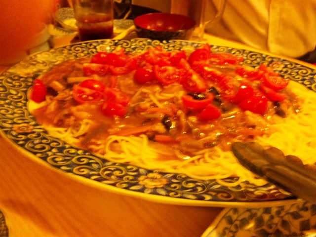 それで、「オレ流、焼きうどん、どーん!!」って。
