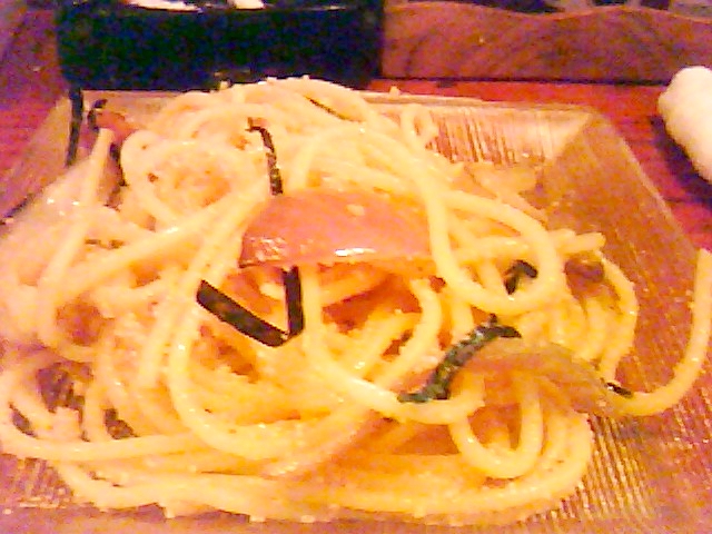 ちはえもんさんが絶叫オススメする、糸車の「めんたいこパスタ」。味がいいってか美味いの一言。ばくばくいく感じです。
