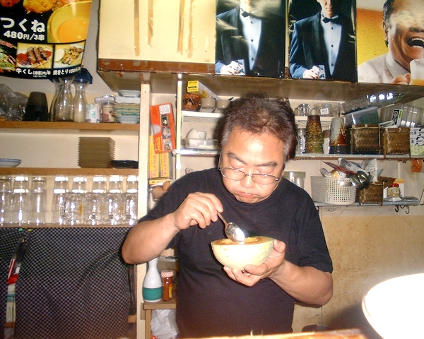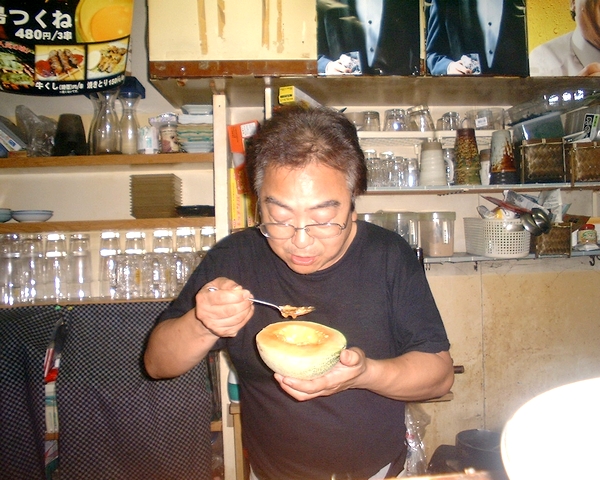 マスターいわく「メロンの真ん中のタネの部分が一番うまい!」とスプーンでぺろり。果肉の部分は、鳥羽さんはじめ来店のお客様に振舞っていたそうですが、自分的には、何ともマスターらしい食通?なコメント、何となく「カニ早剥きチャレンジャー募集」を思い出しました。メロンの種の部分好きの方は、ぜひ自薦で挑戦下さい!!