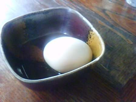 最初に出てきたのが、付け合わせでしょうか、場持ち用でしょうか、味付けゆで卵。