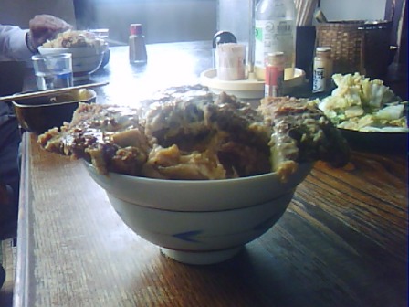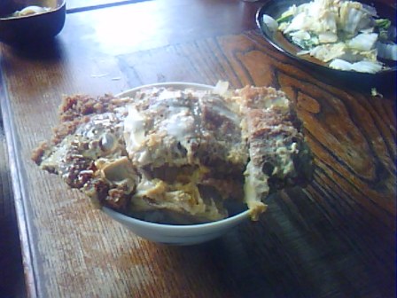 ↓↓で、「カツ丼」です。どーん!! はみ出てっから。