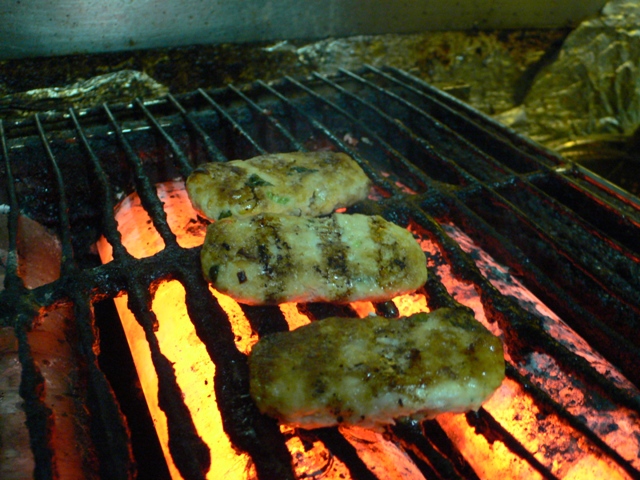 焼き途中の「つくね」。こんがり。
