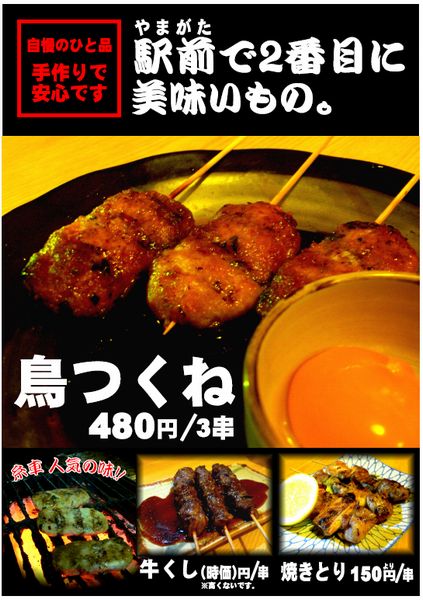 ・「駅前で2番目に美味いもの、あっがら、“つくね”、すんごく美味いんだぁ、いぐべっ!!」