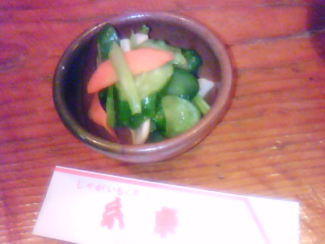 ●「かぶときゅうりの漬け物」。かぶの茎がおいしんです。