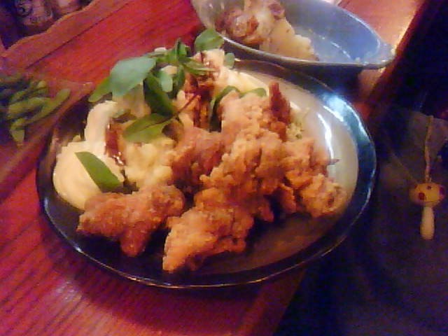 ●殿下の宝刀「鶏から&ポテトサラダ」。