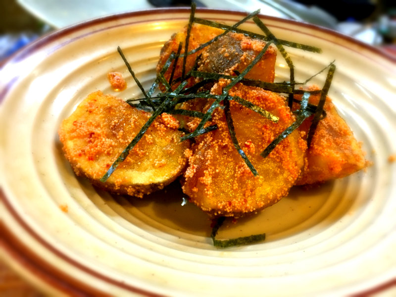 宝刀「めんたいこじゃが」。先日、東京からのお客様にこれオススメするの忘れたぁ、。糸車さんで「始めてのお客に食べて欲しいメニュー、ベストワン」だな、やっぱり。