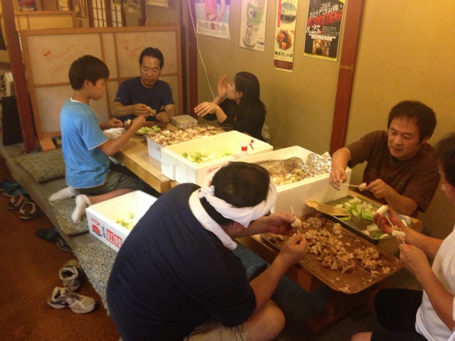 今年も花笠まつりに出店。やきとり、つくね、明太子じゃがの三種の神器で参戦!! 連日完売で、大盛況だったとのこと。仕込も大変だったそうです。糸車さんの仕込み専用フ○○ピン工場!?(笑)
