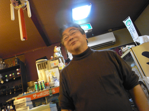 お約束の「修ちゃんラーメン」。今回はM田親子さん(Ymiさんと、Arsちゃん)が洗い物を手伝いに来てくれたので、私と4名できました。寝むそうなマスターです。