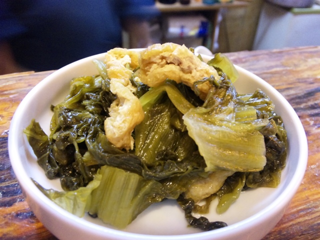 「菜っぱ煮」のお通し。最高です。“せいさい”が食べられる季節は幸せを感じます。山形の青菜はほんとにうまいと思います。