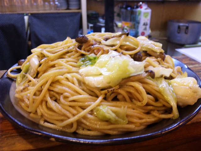 「マスターのおまかせパスタ」。一人前じゃないです(当然)。この日のはきのこの和風かな。