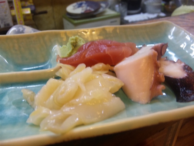 久々のおさしみ(ハライチ風に云うと繋がってらしくなる、)。白い貝(はっきりと言わない)、とってもイケました。またお願いしますマスター。