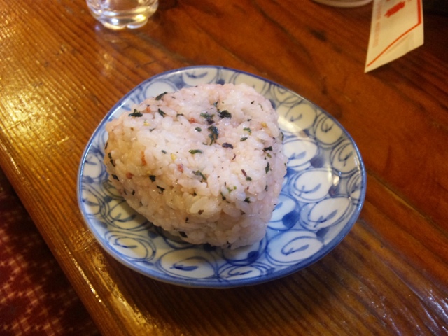 カウンターで飲んでて、結構うれしいのが「おにぎり」。コンビニのおにぎり以外に、まして手づくりのおにぎりを食べる機会がなくなった自分にとってはほんとに美味い食べ物です。昔は三角のおにぎりが嬉しかったけど、今は丸みをおびたカタチが好ましいなぁ。。(ん?、何か、いやらしい?、同感の人多いと思うけどなぁ)