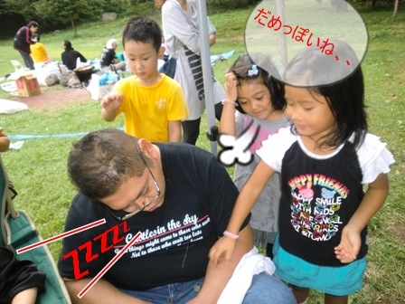 ⑧案の定、飲みすぎで寝ちゃいました。そしてこのあとしばらく起きませんでした。突っついたり、叩いたり、遣り放題のちびっ子たち。ぬいぐるみじゃ無いぞー!!