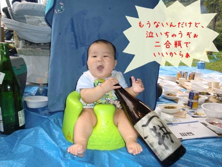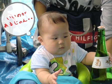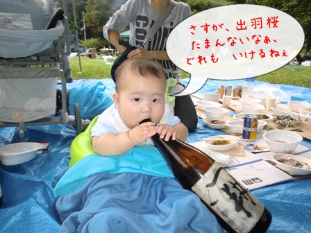 ⑪出羽桜‘一耕’を片手にこの貫禄。さすがマスターの孫(注:お酒は二十歳になってから)