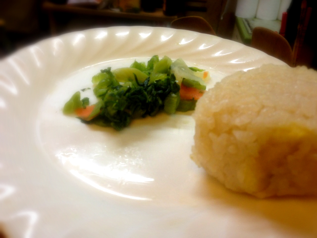ぱっと見、フレンチっぽく見える写真です(見えねがしたん、?、)が、「おみづけ」と「栗ごはんのおにぎり」です。んまいっけ。。