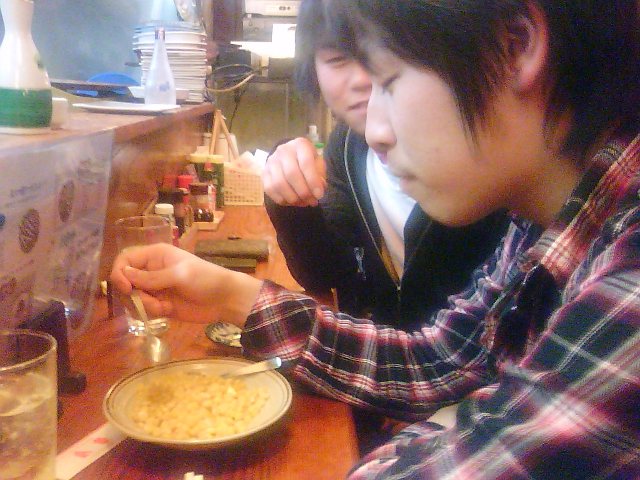 Y君!!です。再びブログ登場。店に入ったらカウンターに居るし、、この日はお友達と、
